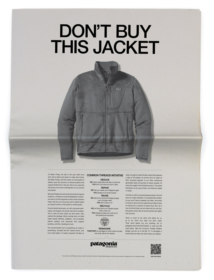 Patagonia's famous "Don't Buy This Jacket" ad in the NYTimes was one way it addressed the problem of consumerism and waste, proposing: "Businesses need to make fewer things but of higher quality. Customers need to think twice before they buy." Companies need to provide more avenues for customers to access those high quality products, enabling them to change their buying habits.